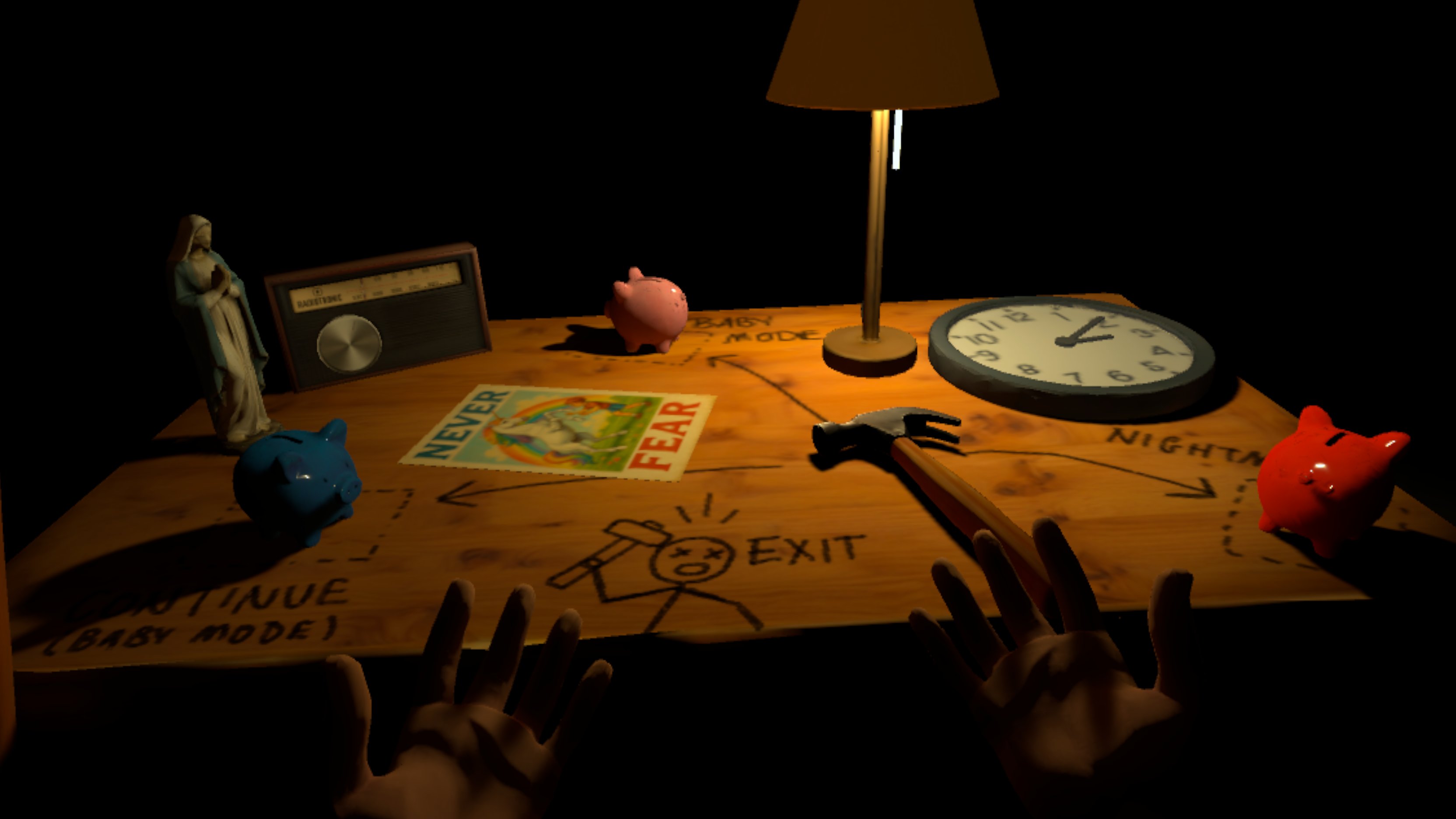 When danger comes, pull the blanket over your head as fast as possible! If you die you can continue the night again in Baby Mode, but on Nightmare difficulty everything is harder - and there are no saves.