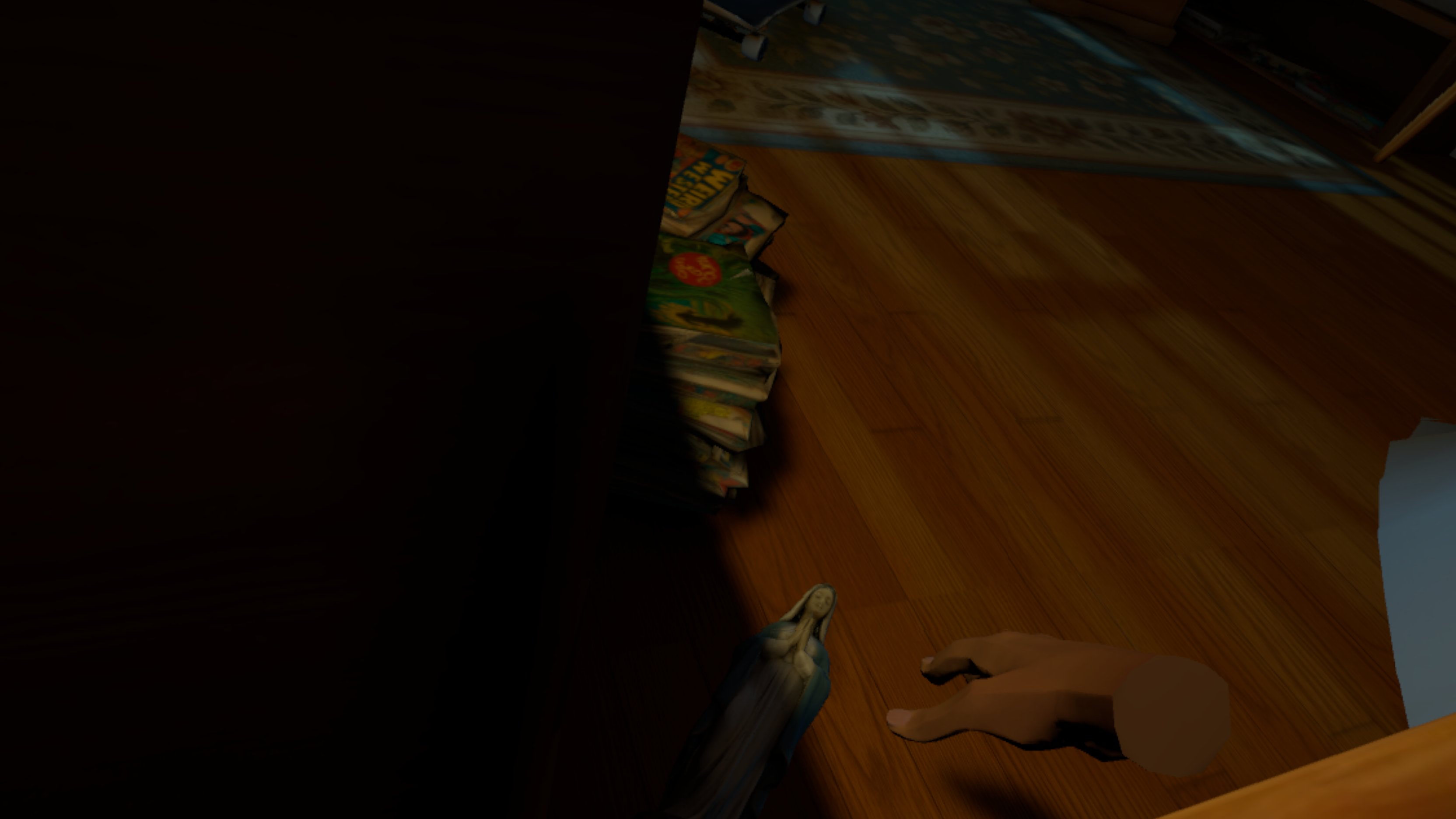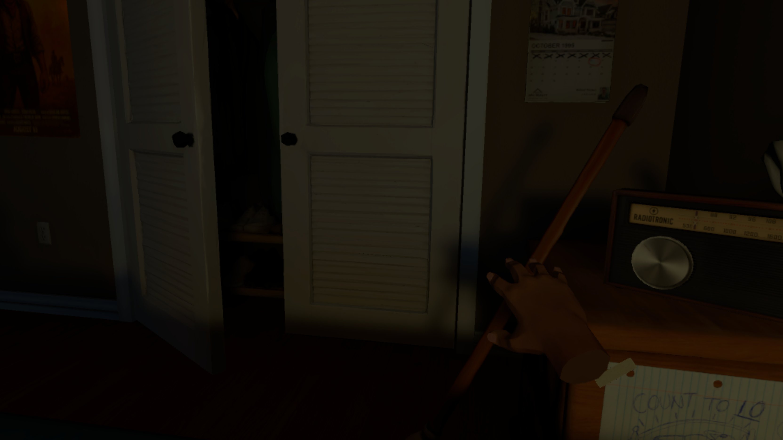 You never need to leave your bed - The 7th Night is a seated experience. Around you are a number of items that have a "good state" and a "bad state". If everything goes bad, then not even the blanket can save you!